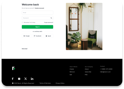 Racct is a responsive web app for rehoming pre-loved items through a seamless, community-driven marketplace. Users can browse, donate, or sell with ease—managing pickups and transactions within 48 hours to reduce waste and support a circular economy.